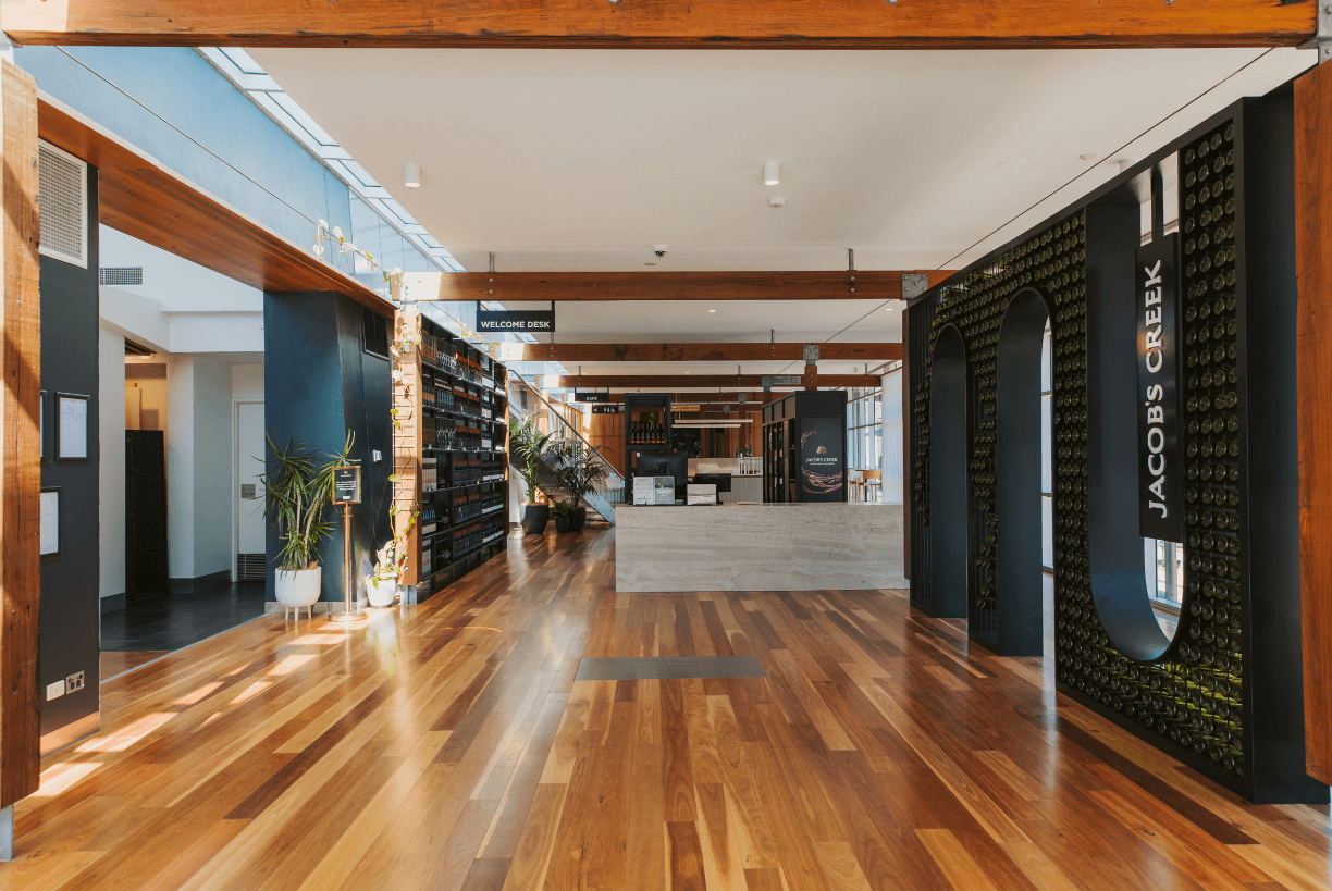 Brett Kelly and Total Fitouts Adelaide Central created a timeless commercial hospitality fitout, IFA award-winner Jacobs Creek. This project successfully transformed an empty commercial space into a contemporary and functional environment that encapsulates the brand’s essence, characterised by light and warmth, and showcases their impressive collection of wines and spirits.
