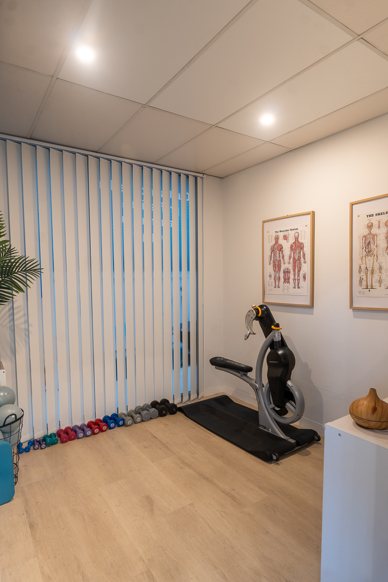 Al and the carpentry team delivered a high-quality medical fitout, focusing on functionality and comfort throughout the treatment rooms. Comfortable couches and chairs are thoughtfully placed in the treatment rooms to put clients at ease and create a relaxing atmosphere. Greenery adds a touch of nature to the spaces, promoting a soothing ambience. In the physiotherapy room, the flooring was strategically split into two different materials, wood and black nonslip flooring, to allow for multi-purpose use. Ample windows and sufficient lighting enhance the airy and fresh feeling of the space, ensuring clients’ comfort during their appointments. High-quality equipment ensures top-notch treatment, and curtains are installed on windows to provide privacy as needed.