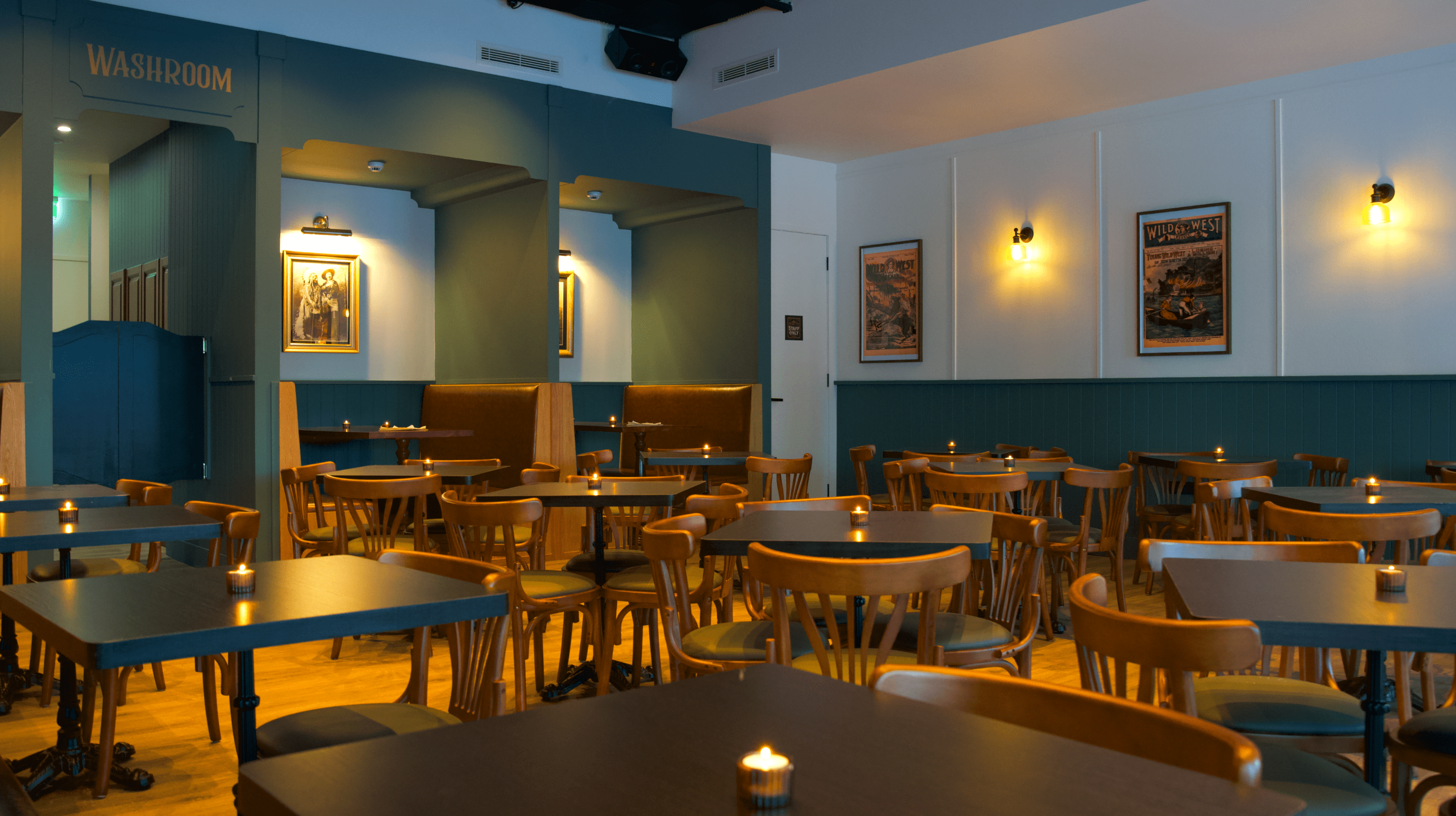 The interior fitout, designed by commercial design experts Form & Fellow and executed by shopfit experts Total Fitouts Canberra North, captures the rugged yet welcoming spirit of the Wild West. Timber flooring sets the stage, leading into a space enriched with VJ paneling and ornate wainscoting that lend texture and warmth.