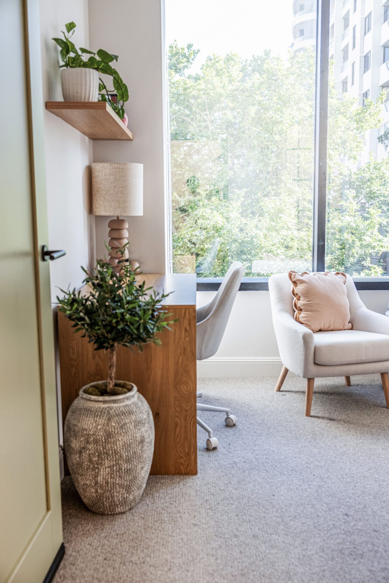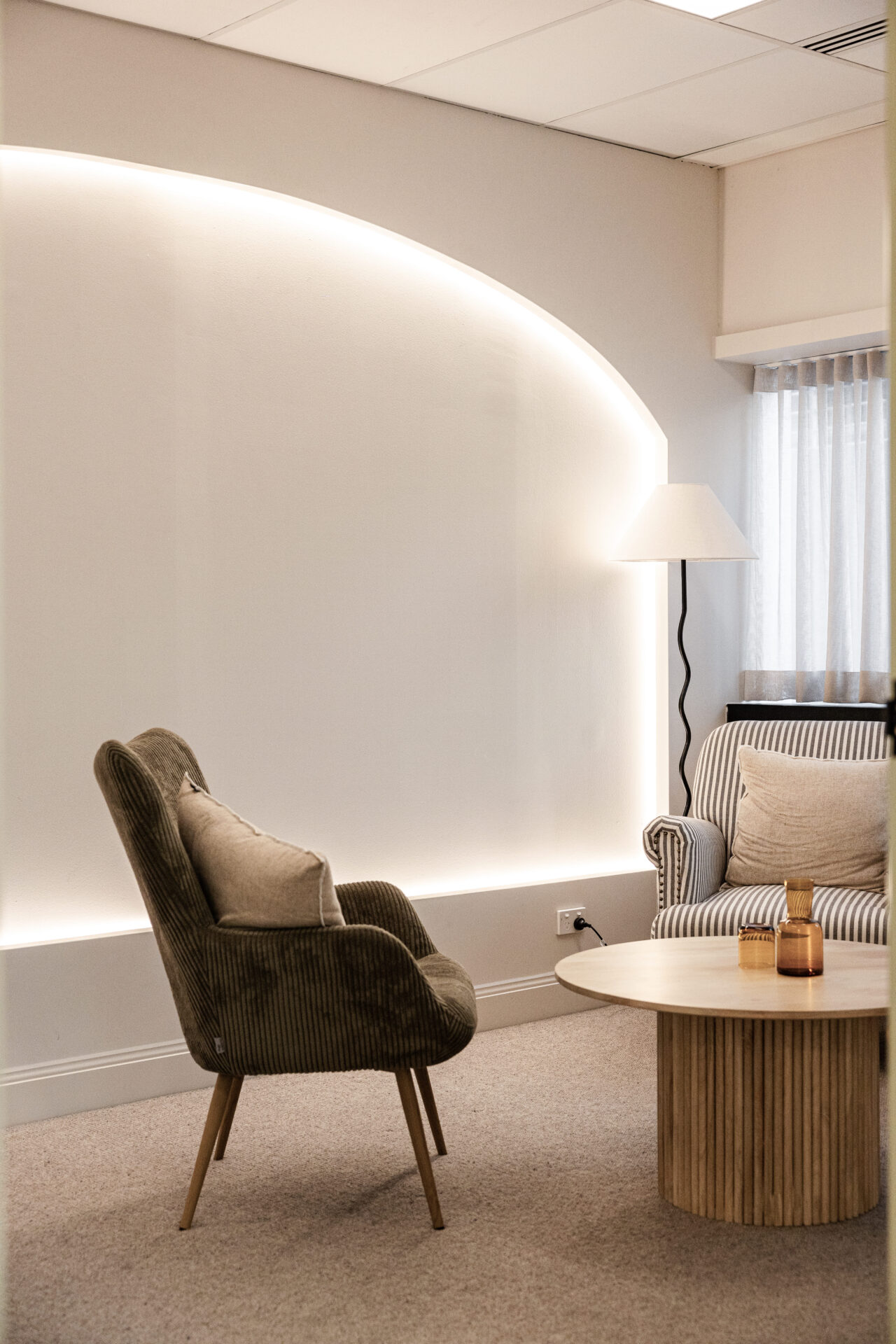 The furnishings and décor have been chosen with care to ensure that the space feels warm and welcoming without being overstimulating. Soft textures, understated patterns, and carefully placed accessories contribute to the overall sense of calm. The styling is subtle yet effective, creating an environment that feels professional and nurturing.