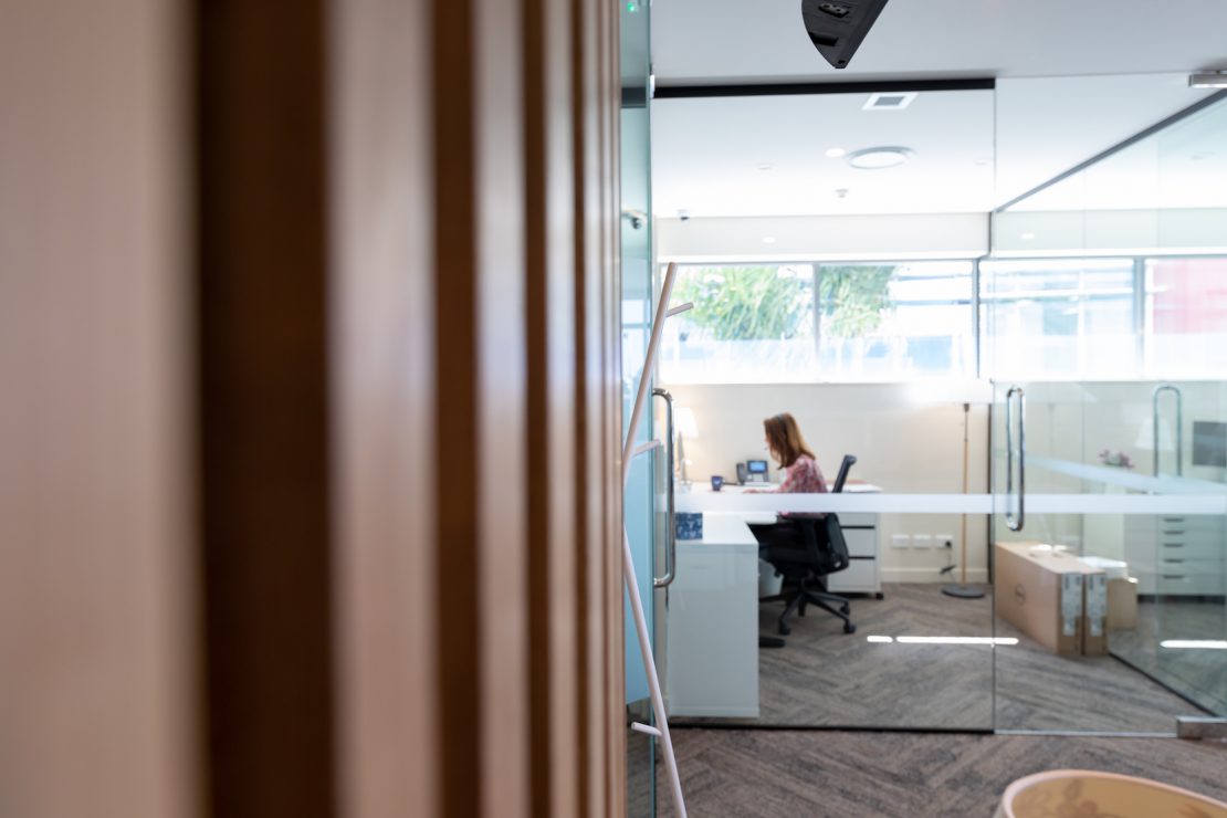 Furthermore, warm, earthy and bright colours let employees and clients feel comfortable and safe. A great balance of glass, caesar stone surfaces and timber patterns evoke the company’s branding and leave a positive impact to both staff and clients.